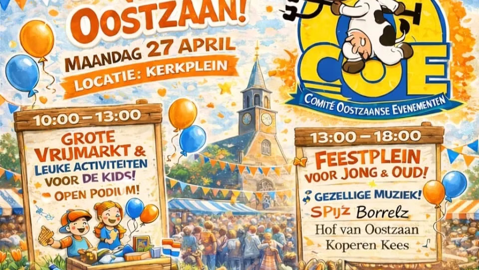 Op Maandag 27 april 2026 kleurt het Kerkplein in Oostzaan weer oranje tijdens een feestelijke viering van Koningsdag! Voor de derde keer op rij organiseren wij een gezellige en feestelijke dag voor jong en oud – en ook dit jaar belooft het weer een geweldige editie te worden. Meer informatie over het programma op www.grotekerk.nl | ||